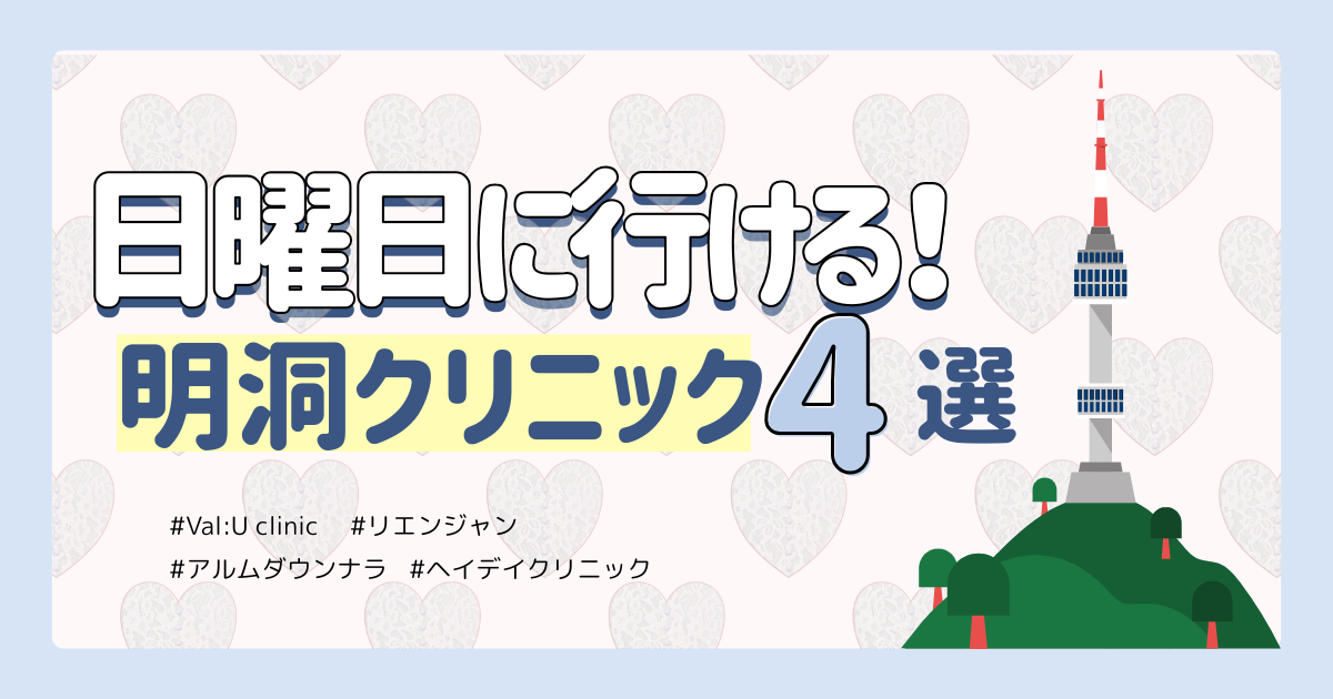 そんな願いを叶える、ソウル明洞エリアで日曜日も営業している美容皮膚科を厳選してご紹介!限られた滞在時間を有効活用し、賢く美肌ケアをするための情報と、失敗しない予約のコツをご紹介いたします。