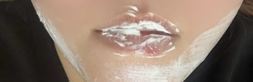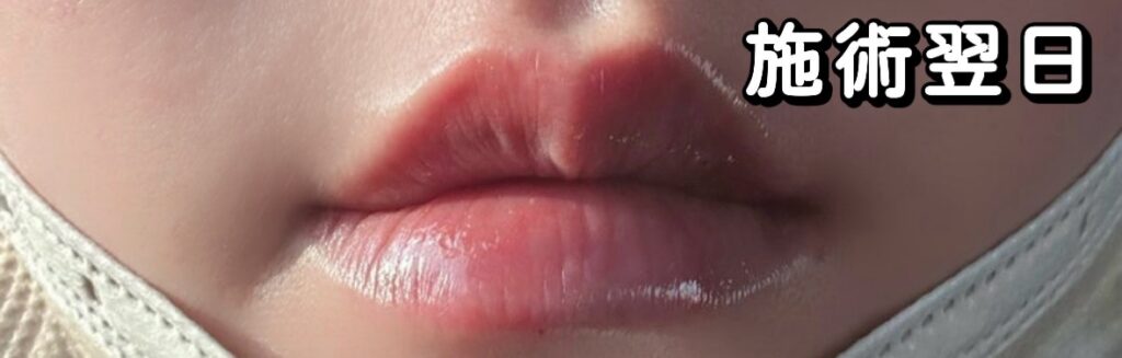 施術直後はパンパンに腫れたように見える唇。他の人に比べて腫れやすいのかもしれないとのことでした。